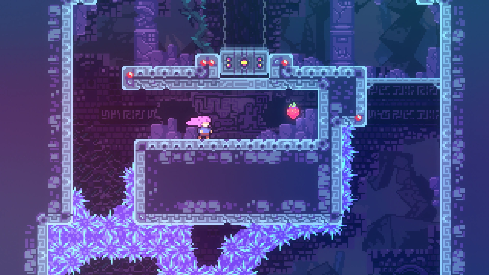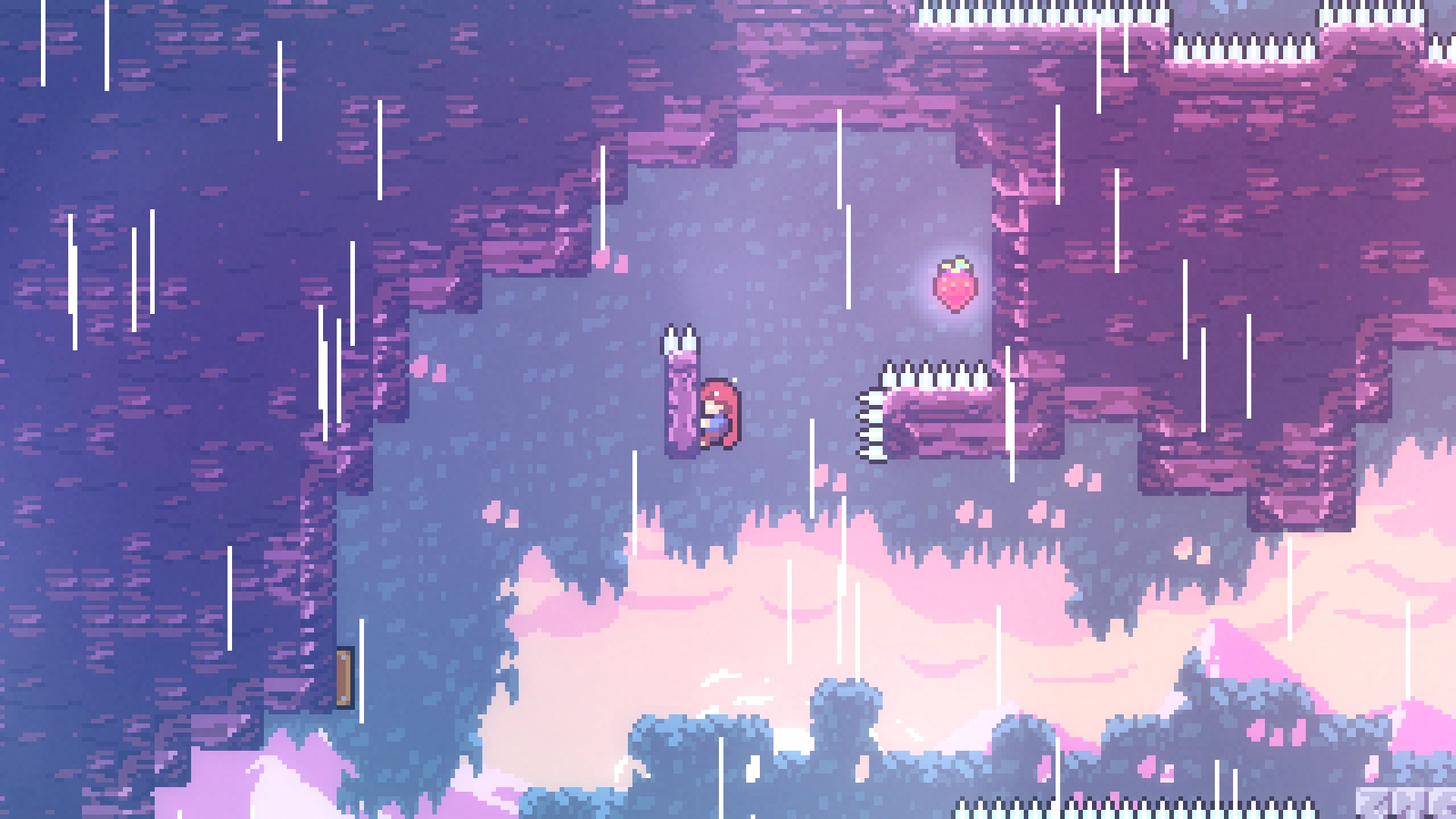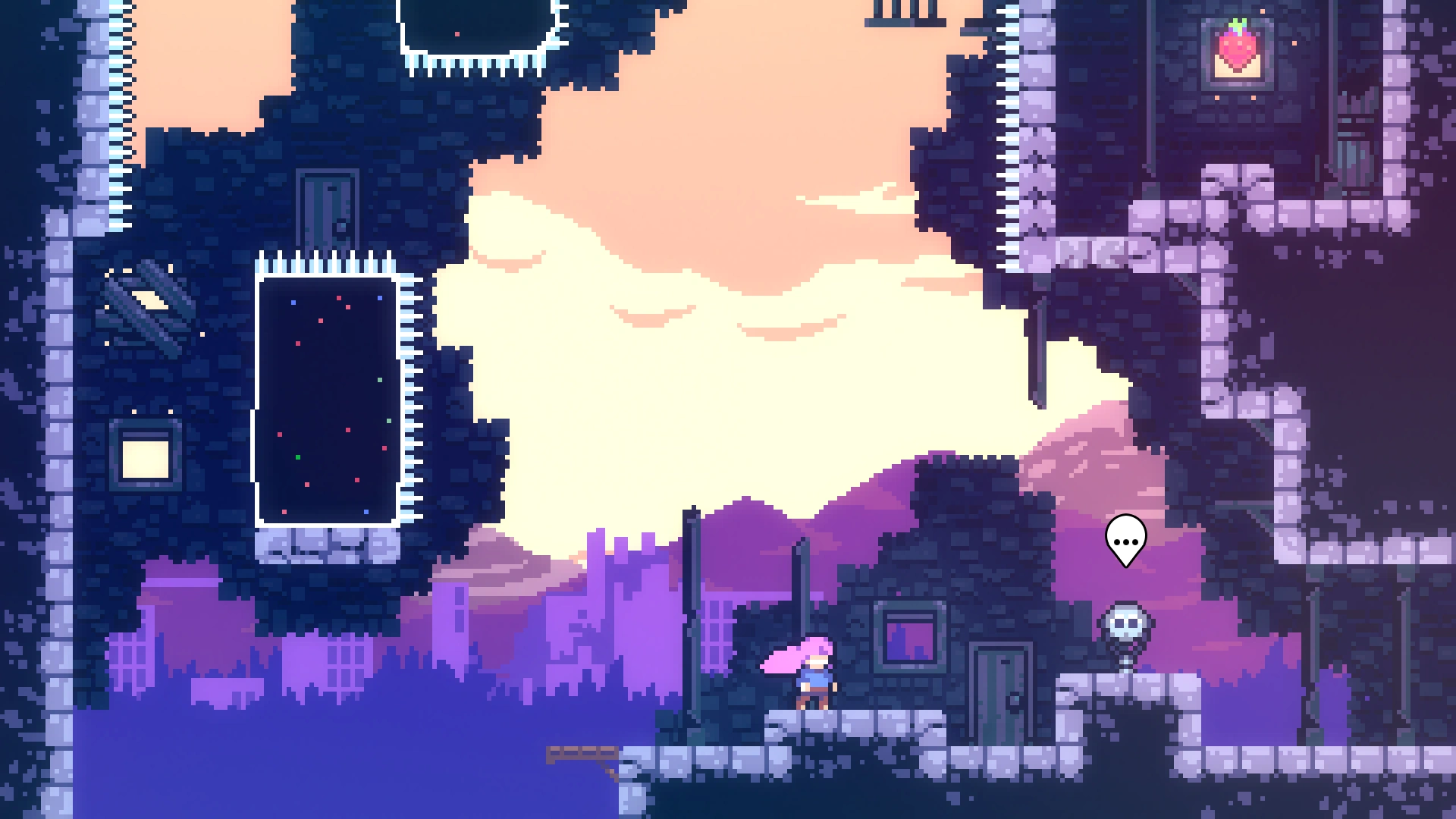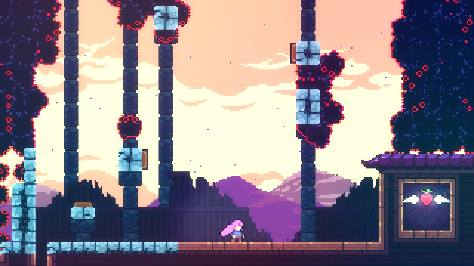 Чтобы добраться до прохода в нужную комнату, требуется применять восстановление рывка при переходе в другой экран, используя левую комнату. Забравшись наверх, игроку нужно обойти препятствия и забрать ягоду.