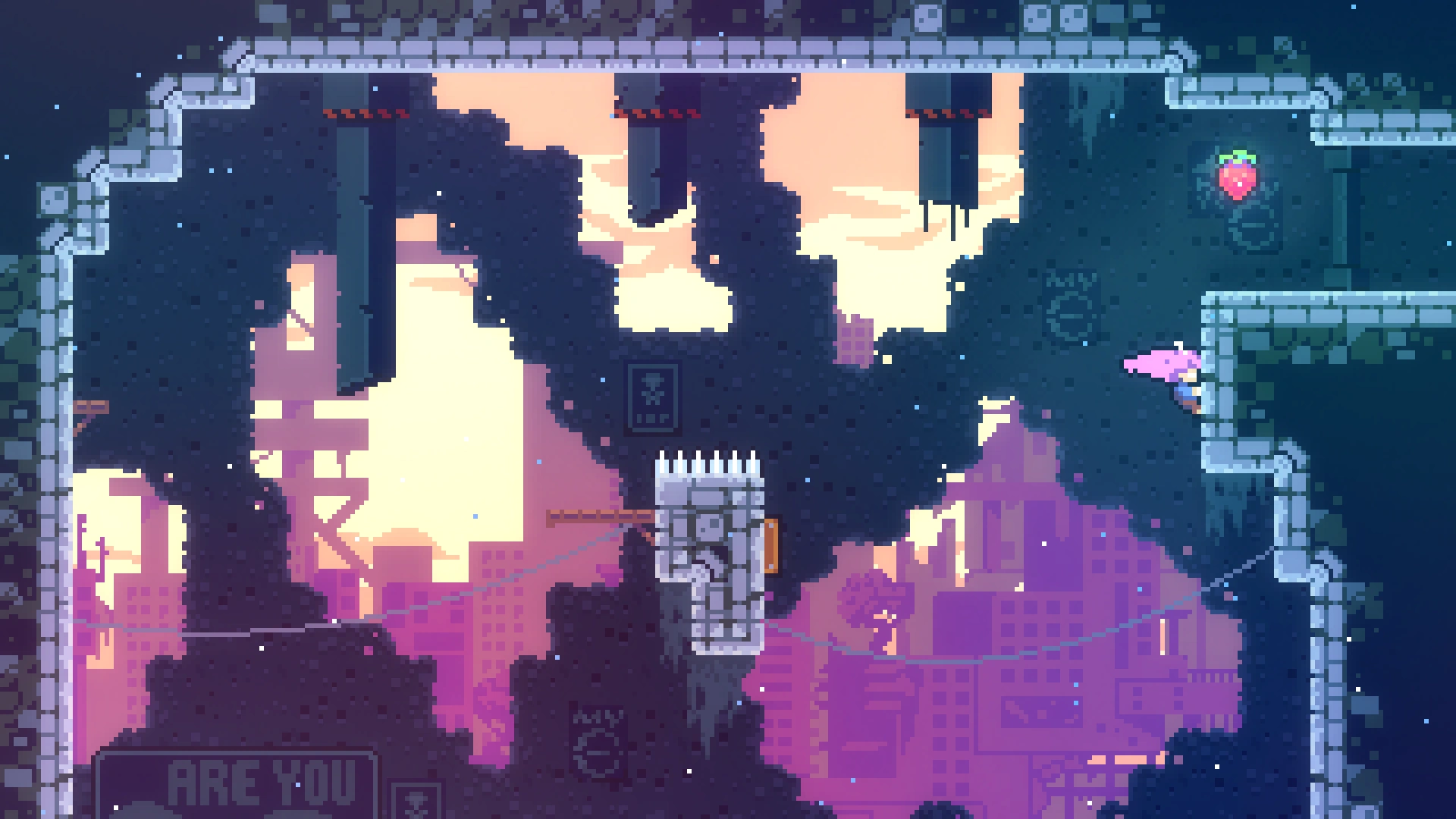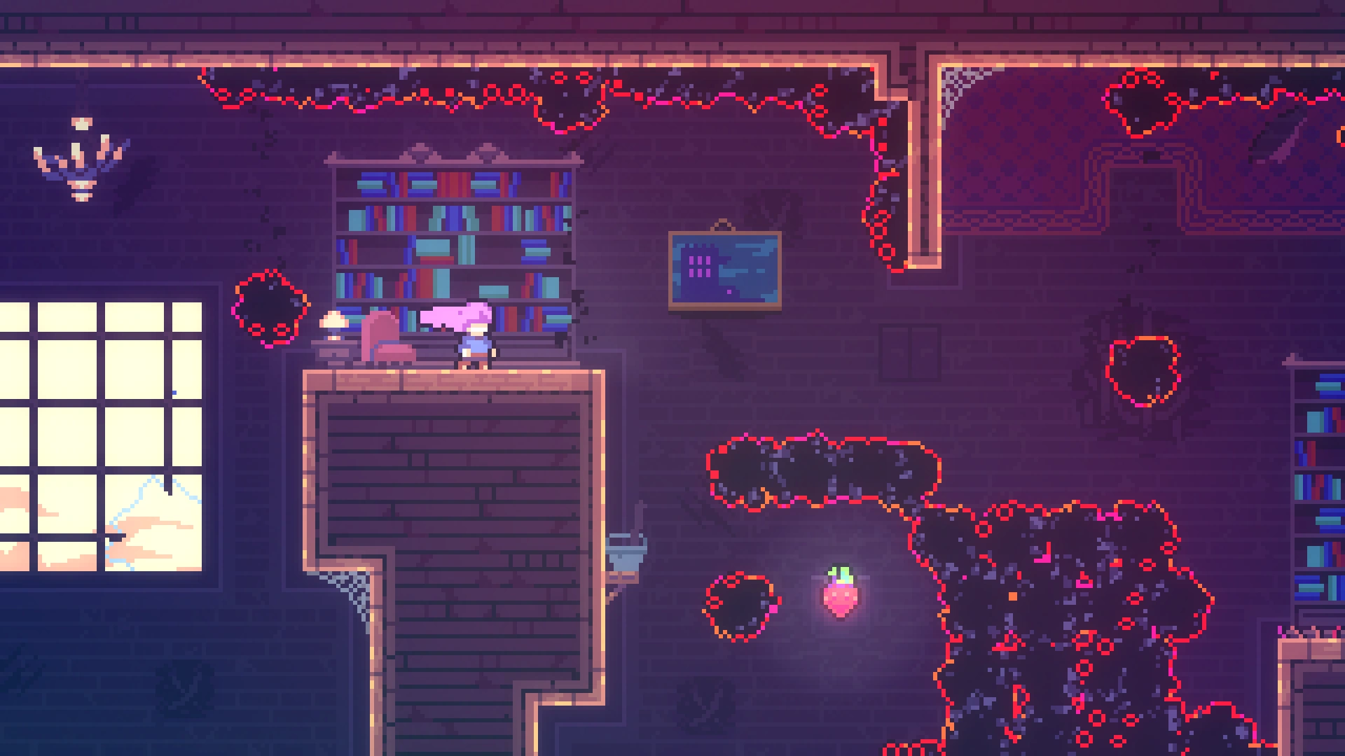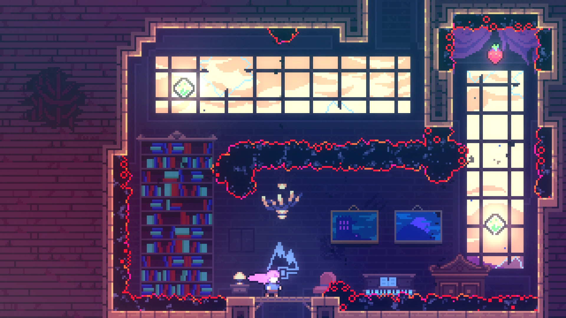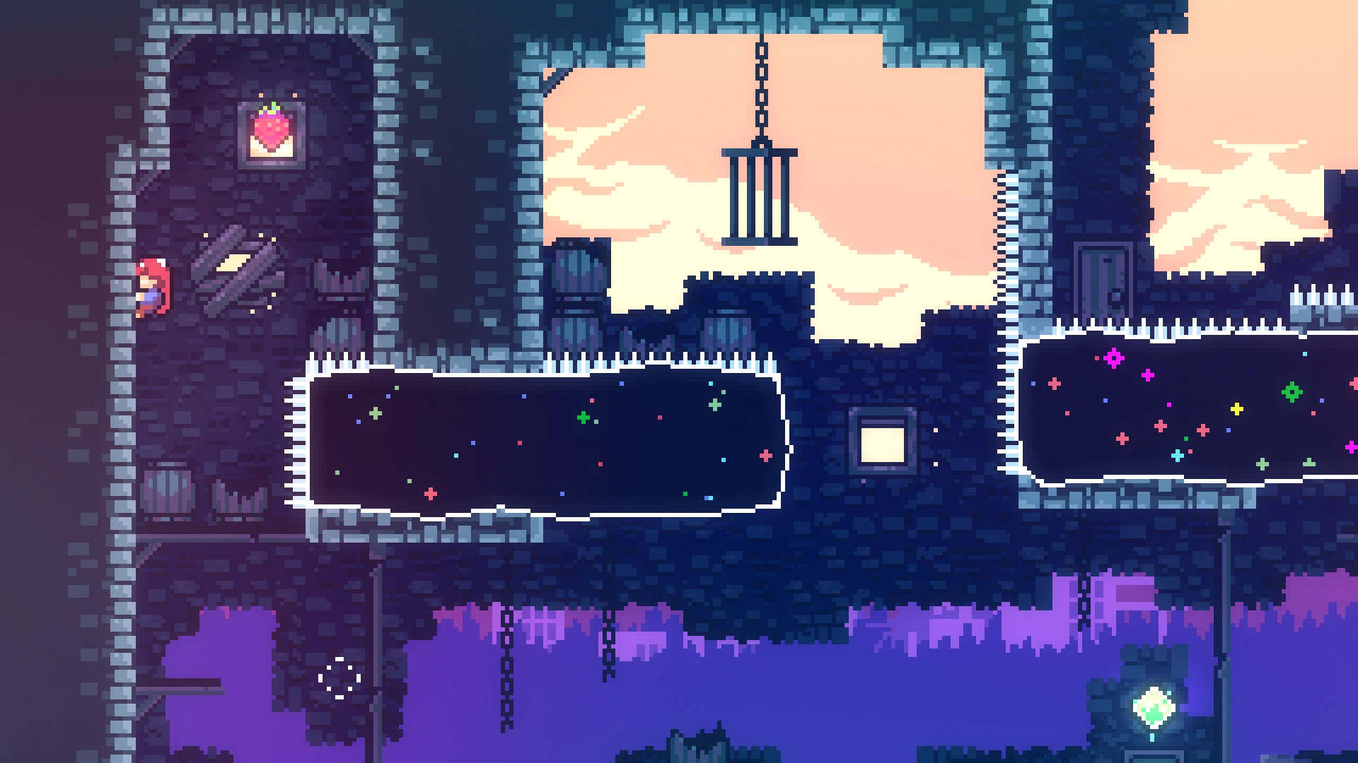 Чтобы добраться до прохода в нужную комнату, требуется применять восстановление рывка при переходе в другой экран, используя левую комнату. Забравшись наверх, игроку нужно обойти препятствия и забрать ягоду.