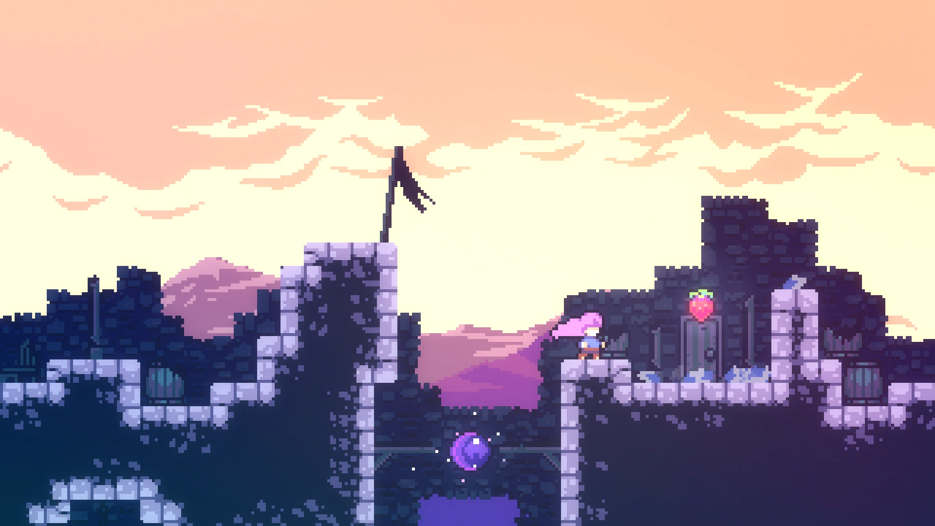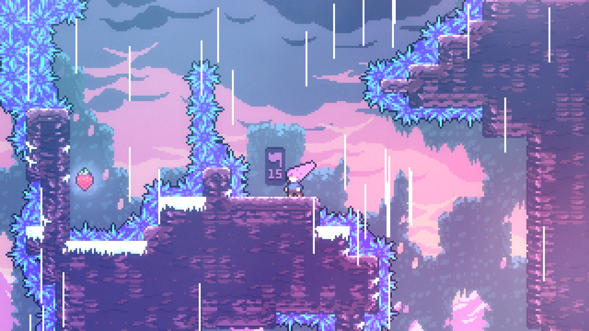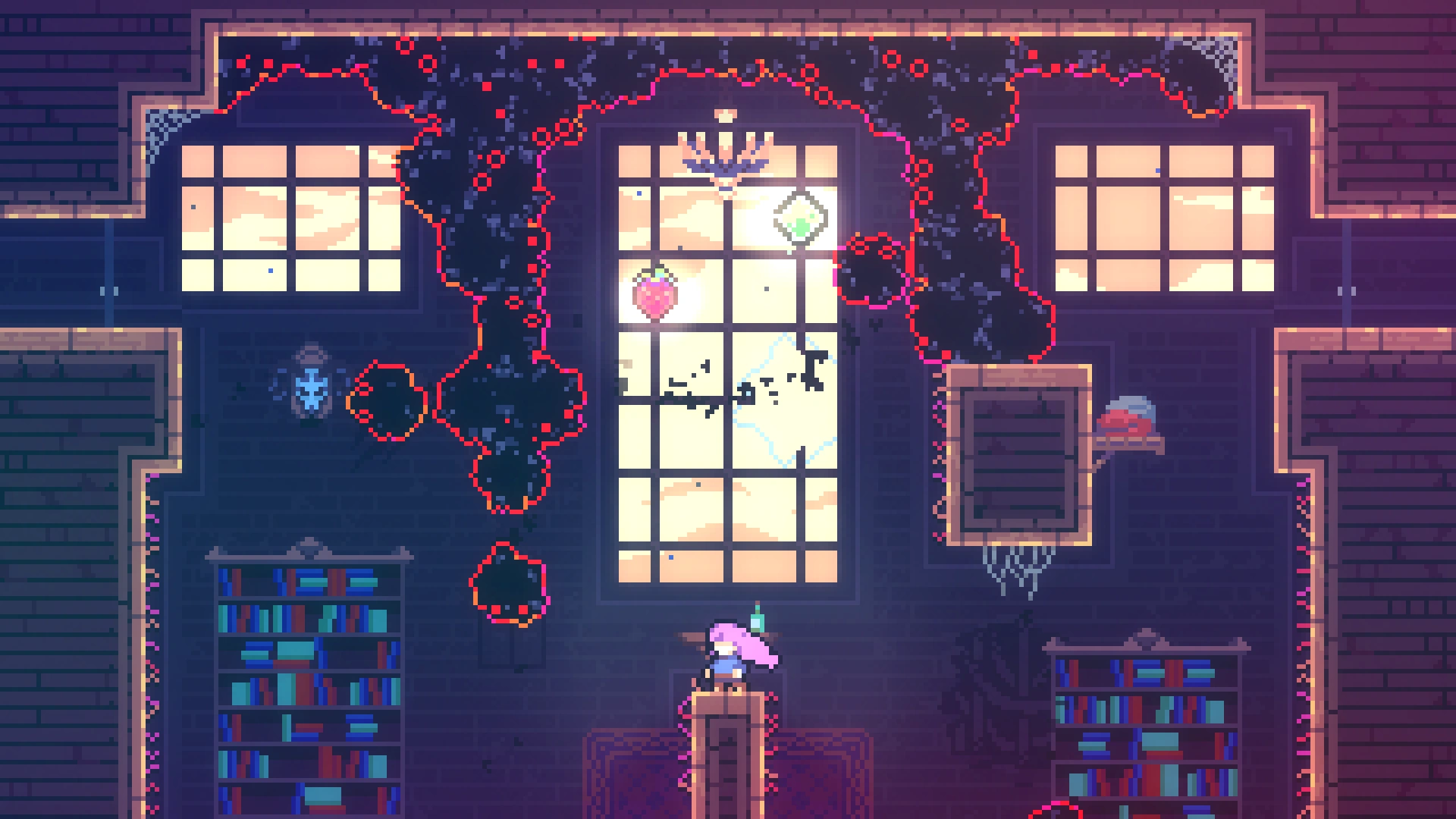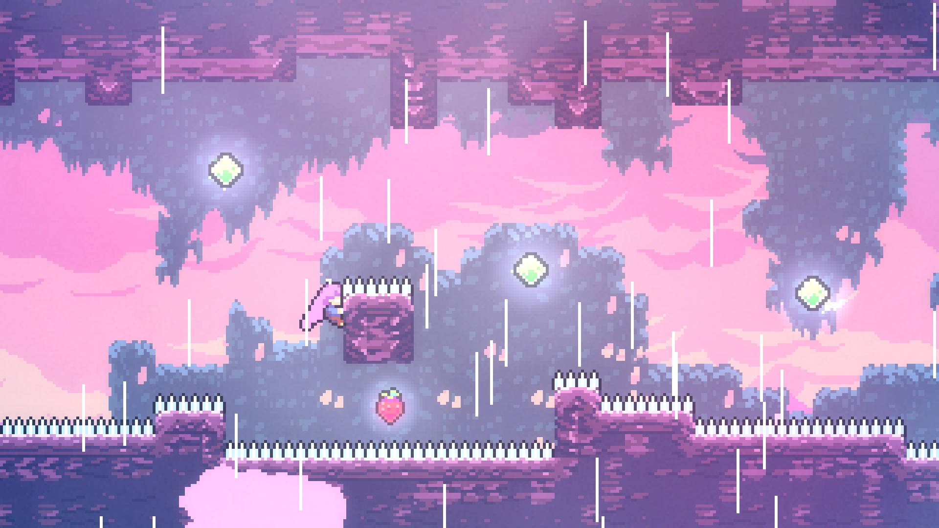 Чтобы добраться до прохода в нужную комнату, требуется применять восстановление рывка при переходе в другой экран, используя левую комнату. Забравшись наверх, игроку нужно обойти препятствия и забрать ягоду.