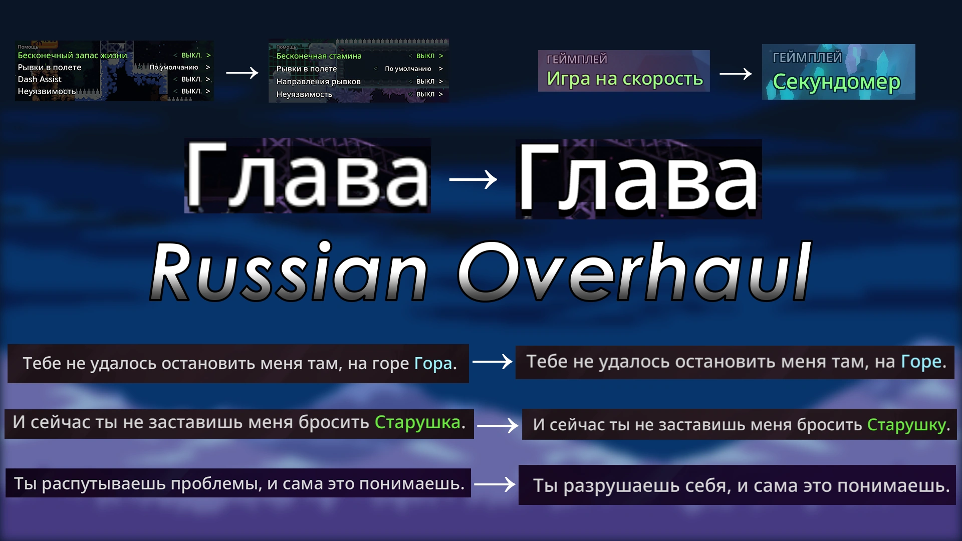 Russian Overhaul - мод, исправляющий недостатки официальной русской локализации, а также добавляющий или исправляющий русский перевод для других модов.
