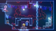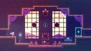 At the end of the eighth room of the subchapter, a smashable wall on the floor can be seen which leads to a hidden room containing this Strawberry. The path to collect this berry looks far more complicated then it actually is. Walk off the ledge and do a dash straight to the right, then a dash straight up to get between the dust bunnies. Hold right from there into the dash crystal and dash right and straight up again to get past the next part. Continue holding right to collect the dash crystal and the Strawberry, then dash straight up twice into the spring to bounce you to the left, where you can do some dashes to the left to get back to the start. However, there's also a shortcut to a later room located just above the spring in a hidden wall, so after hitting the spring you could dash right twice to get to this area and continue onward.