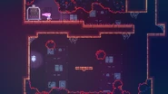 By going into the gap in the floor from the previous Strawberry's room, another secret room is accessed. This room has many key tokens surrounded by many platforms with sludge-spawning tiles on them and no floor. There are many ways to go about collecting them all but the easiest will start with the player standing on the disappearing platform and dashing left to climb the platform you arrive at. Jump left over the sludge and then dash diagonally up-left BEFORE touching the dash crystal to get your dashes back after doing the dash. Do another dash leftward for safety to collect the first key token, then dash over to the right to climb up the bottom platform. Jump over this platform to the right to collect another key token and grab onto the platform above. Stamina will be running low by now, so climb a bit and jump to the left to the other platform, then wall jump back and jump into the dash crystal. From here, fall down inbetween the gap of sludge from the lowest platform and the first platform and keep moving right, then dash straight to the right into the third key token and then straight up. Climb up the right side of the platform and jump to the last key token, then wait for the key-activated platform to go down and land on it to then go to the Strawberry.