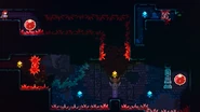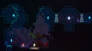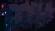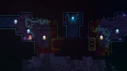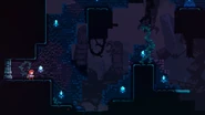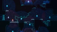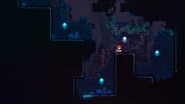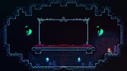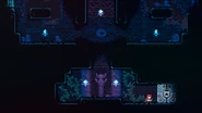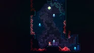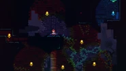 Depths is the second subchapter of Chapter 5: Mirror Temple in Celeste. The subchapter starts with Madeline finding Theo inside of a mirror, with both being confused on how it happened. After continuing forward through the subchapter, the player will eventually come across a giant mirror which, after activating it by hitting 2 dash switches, will suck Madeline into a dream. There will then be a section where the player plays as a Seeker to kill Madeline in this dream and wake her up, ending the subchapter. Aside from informally introducing Seekers, red walls, and barriers via the Seeker dream, this subchapter also introduces yellow torches. The Crystal Heart of Chapter 5 and the Cassette to unlock Chapter 5's B-Side can both be obtained in this subchapter.