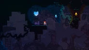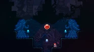 There will be many dark rooms in this subchapter where the player can hardly see beyond nearby Madeline until touching blue torches to see the path. A key is needed to advance further past a certain point in the subchapter which requires a long detour. However, using the method to get the Crystal Heart of the chapter, it can be ignored and it's possible to advance past the lock. This is particularly helpful in Golden Strawberry runs as it reduces risking death and also saves time.