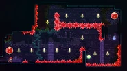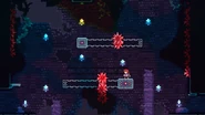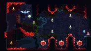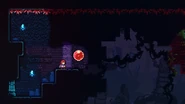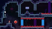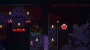 By going to the top-right of the fourth room of the subchapter, another transition is found to a berry room. Ride the red bubble at the start to the right and, before hitting the crystals, dash diagonally up-right and grab the wall and the dash crystal. Jump off the wall and dash again diagonally up-right, then climb this wall to reach the other red bubble. Direct it to the left and dash diagonally up-left before reaching the crystals. Land in the small gap on the floor where there are no crystals, and you can get back to the entrance.