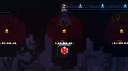 The Crystal Heart of this chapter will be tricky to find as it requires you to use a key to unlock a lock found in the eleventh room of the subchapter. On the floor of this room is a smashable wall which unlock the path to the lock. However, you'll need to use a key on a lock earlier in the subchapter normally. By going to the ninth room of the subchapter early, a secret area is found by dashing straight up into the second floating platform after riding the red bubble to the left. This will give access to another red bubble, which you can take upward into a tunnel in the ceiling. By getting the key from the level normally, then going through this path, you can arrive at the ninth room of the subchapter with a key and unlock the lock which guards the Crystal Heart room.