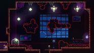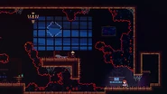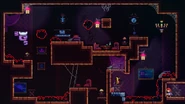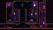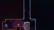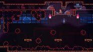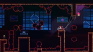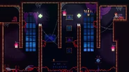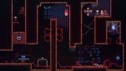 The first room of the subchapter is the titular elevator shaft which Madeline must get to the top of with some simple wall jumps. At the top of this room on the right, Theo can be seen exiting the vent which he entered earlier and will have a conversation with Madeline in which both of them talk about their feelings on Mr. Oshiro. The following rooms are filled with dust bunnies or sludge-spawning tiles across the floor. Near the end of one of the rooms, Mr. Oshiro is panicking and talking to himself about how he will keep Madeline in the resort. He invites Madeline to follow him after noticing her, not realizing he just created a barrier of dust bunnies. The player has to go down from this room and into a couple more rooms to reach a key needed to unlock the way to the other side of the dust bunny blockade.