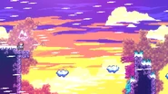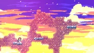 This will be the only room to have wind shifting from blowing left and right on a timer. In this room you'll encounter many white clouds and a few protrusions from the bottom with crystal spikes on top of them. You should only go right when the wind is blowing to the right and stall on a cloud while the wind is blowing to the left until it blows right again.