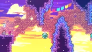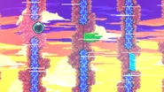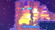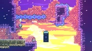 Starting from this C-Side, generally C-Sides will start getting noticeably harder and have more difficult rooms than just the final one. The first room has some wall bounces being done out of green bubbles. The second room has a tricky triggered platform which the player must shift sides of multiple times to make it to the top of the room. The final room has harsh wind blowing to the right, making control of Madeline incredibly difficult.