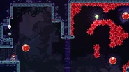 A good majority of the challenges in this C-Side will revolve around the player doing wall bounces off of small lips in the wall or off of swap blocks. The first room has a very tight pattern required to do the wall bounces needed for making it to the end safely. The second room tests the player on their knowledge of swap block momentum. The final room has red bubbles transporting the player to various parts of the room which each have wall bouncing challenges.