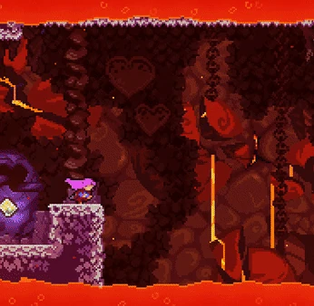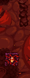 Blocks of ice/magma that kill the player upon contact. They'll appear and disappear depending on whether Hot/Cold Switches are toggled to hot or cold (with ice appearing when cold and disappearing when hot, and magma doing the opposite). These mainly serve as a means to gate paths depending on temperature, in a similar role of the Shimmer Blocks in Chapter 3. Ice/Magma Barriers are exclusive to Chapter 8.