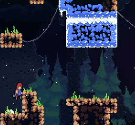 Wooden-looking springs that bounce the player in the direction the spring is facing with added upward momentum. Springs also recharge the player's dash when the player comes into contact with them. These can be found in all chapters except the prologue and epilogue.