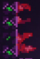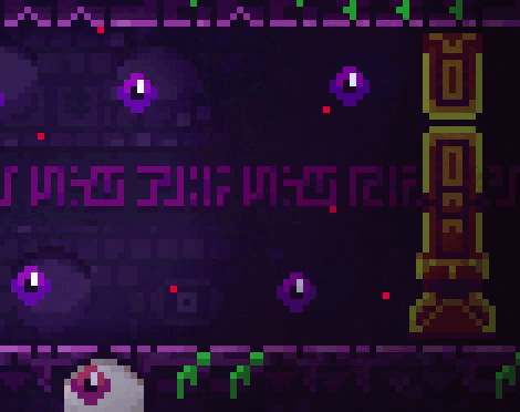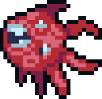 Seekers are distorted face-like objects with many tentacles protruding from them. Seekers are purple by default, but will turn a bright red when Madeline comes within their line of sight, causing them to attempt to charge and kill Madeline. If this fails, the Seeker will prowl in the vicinity of where Madeline was last seen. The attack is made by charging up the attack (usually taking about one second) and dashing (letting it reach the far side of most screens), with the Seeker able to slightly change direction during dashing to adapt to the player's movement. Seekers can toggle Shields by dashing through them. The player can defeat Seekers by one of two methods. The first is temporary: if Madeline jumps on them, this will cause them to enter a dormant state for a few seconds, then explode, resuming their normal state and flinging Madeline if she is nearby. The second is to squish them via Temple Gates or Swap Blocks, and this will permanently destroy Seekers who are defeated in this fashion, rendering a death animation similar to Madeline's post-Chapter 6 death animation. Seekers are exclusive to Chapter 5.