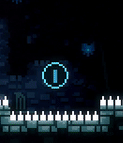 Conical spikes that kill the player on touch. They are individually fairly small, and, as such, are usually found in rows. They can be found lining any side of various types of platforms or walls. The player can move through spikes as long as they are moving in the direction that the spikes are oriented in; this is used in speedruns to skip certain rooms. These can be found in all chapters except the prologue and epilogue.