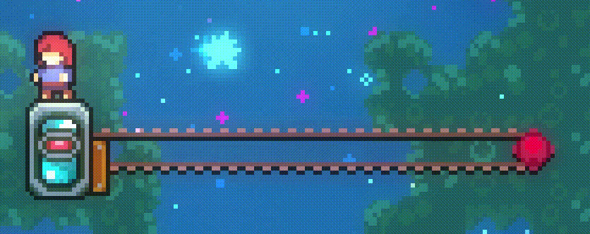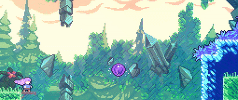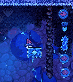 Red orb-like bubbles that, upon touch, begin moving the player in whatever direction corresponds with the direction keys that the player is holding down, only stopping when the object either collides with a wall or the player dashes out of them. Either way, this will recharge the player's dash, and the bubble will reappear shortly afterwards at its origin point. These can be found in Chapter 5 and Chapter 9.
