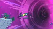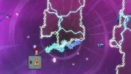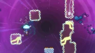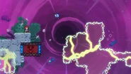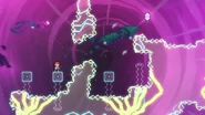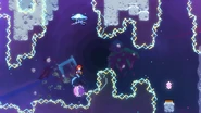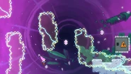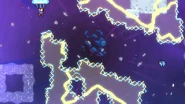 Jump and dash into the Bird, then grab the jellyfish during your fling and take it to the right. Do a jellyvator technique if needed to make sure you get over the blocks of electricity and make it to the springs to the right. These can be used as much as needed, allowing you find the right time to throw and dash into the jellyfish to the right when the electricity is out of the way, collecting a double dash crystal on the way. Wait one cycle after continuing on to do this again past the next moving electricity pillar, then one more time on the last one. You can then fall into the purple orb below after the barrier destroys your jellyfish, allowing you reach the end and destroy the utility vault.