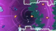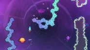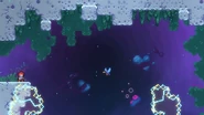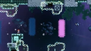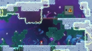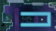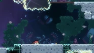 In this subchapter, the challenges will be fast-paced and require knowledge of many tactics utilized throughout the game, namely interactions with purple orbs, jellyfishes, pufferfishes, wavedashing, wall bouncing, and strategizing around the momentum provided by the Bird. In most rooms, there will be electricity obstacles covering much of the area as well as the right transition which must be removed by dashing twice into the utility vaults at the end.