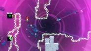 Jump and dash into the Bird, which you can use the fling of to make it all the way to the right and directly into the first purple orb. You'll be launched up into a feather, which you need to then take right and through the gaps of the moving electricity. It should be aligned to move a bit down or up as you go right to eventually land on the Bird again. You'll be flung into a purple orb, which will launch you and allow you to touch the Bird again and be flung right even further, then you'll reach the end.
