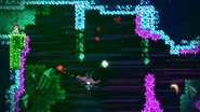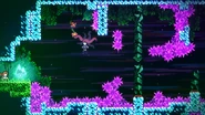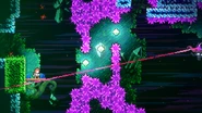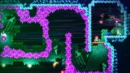 Rock Bottom is the third subchapter of Chapter 6: Reflection B-Side in Celeste. The subchapter begins the boss fight against Badeline where the player must push her back through the rooms by hitting her in various spots, carefully being bounced around for each hit to navigate the rooms.