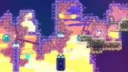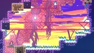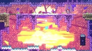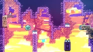 The player will start this subchapter in a large room with many transitions across all sides. Most of these will lead only to Strawberry rooms. To progress through the subchapter, the guided platform seen at the start of this room must be steered left around a ledge to get Madeline high enough to reach the top-right transition which leads further into the subchapter. Despite many transitions and berry rooms found here, this subchapter has very few mandatory rooms to complete it. These rooms will be testing the player's knowledge of using triggered platforms and guided platforms to make it by.