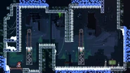 First, you should hit the climb button against the traffic light block at the beginning of the room to cause it to move up but release it right after. Jump to the wall and hold onto it as you wait for the traffic light block to appear, then when it gets back to its original position, grab its right side. Ride it up, but don't release the climb button until it comes to a complete stop. When it stops, jump to the right and do a wall jump off the left ledge to be able to grab the other traffic light block. Jump over the top of this traffic light block as it starts to move back down and dash to the end section of the room.