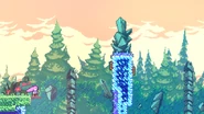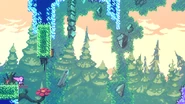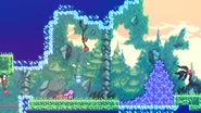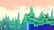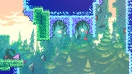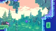 Start is the first subchapter of Chapter 7: The Summit in Celeste. The subchapter starts with Madeline looking up at the mountain and then she soars up and arrives at the first room. This subchapter has some simple areas to give the player some practice with their new double mid-air dash. Purple orbs in the last room of the subchapter are used to give Madeline a boost up for the first time in the game and when she reaches the final purple orb, she and Badeline will talk before arriving in the next subchapter.