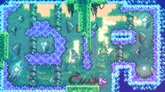 This Strawberry will be found in the same room as the last one, except on the right side instead of the left. Dash up and grab the green part of the ceiling hanging in the middle of the room, then jump to grab the floating platform on the right's left side. Jump up from there and dash to the right to collect the dash crystal, then fall to the Strawberry and dash up, then left to get out of the area.